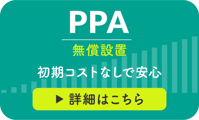 PPA(Power Purchase Agreement)は太陽光発電システムの設置、運営、メンテナンスを弊社が提供し、 お客様は発電した電力を一定期間(20年間)ご購入頂く契約です。設備は弊社の所有となります。