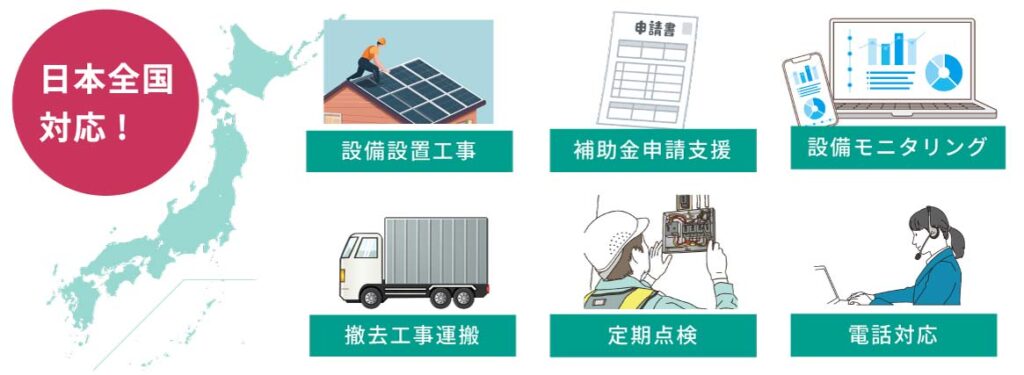 弊社は太陽光発電案件において幅広い実績を持っておりますし、日本全国に提携している施工協力会社がございますので、ご心配なくご相談ください。